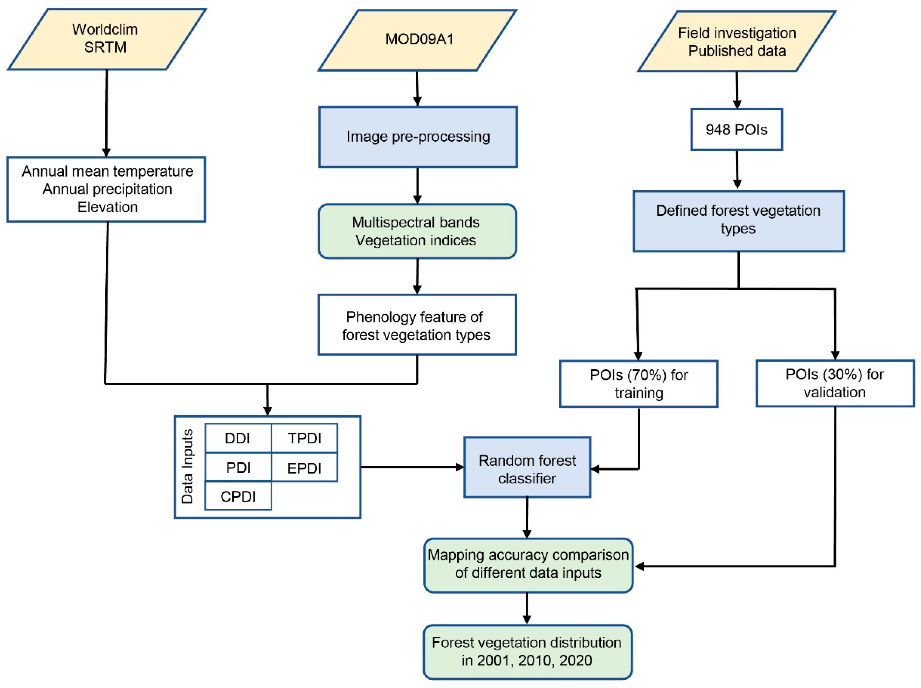 Yang J, Liu D, Li Q, Wanasinghe DN, Zhai D, Zhao G, Xu J. Enhancing Accuracy in Historical Forest Vegetation Mapping in Yunnan with Phenological Features, and Climatic and Elevation Variables. Remote Sensing. 2024; 16(19):3687. https://doi.org/10.3390/rs16193687