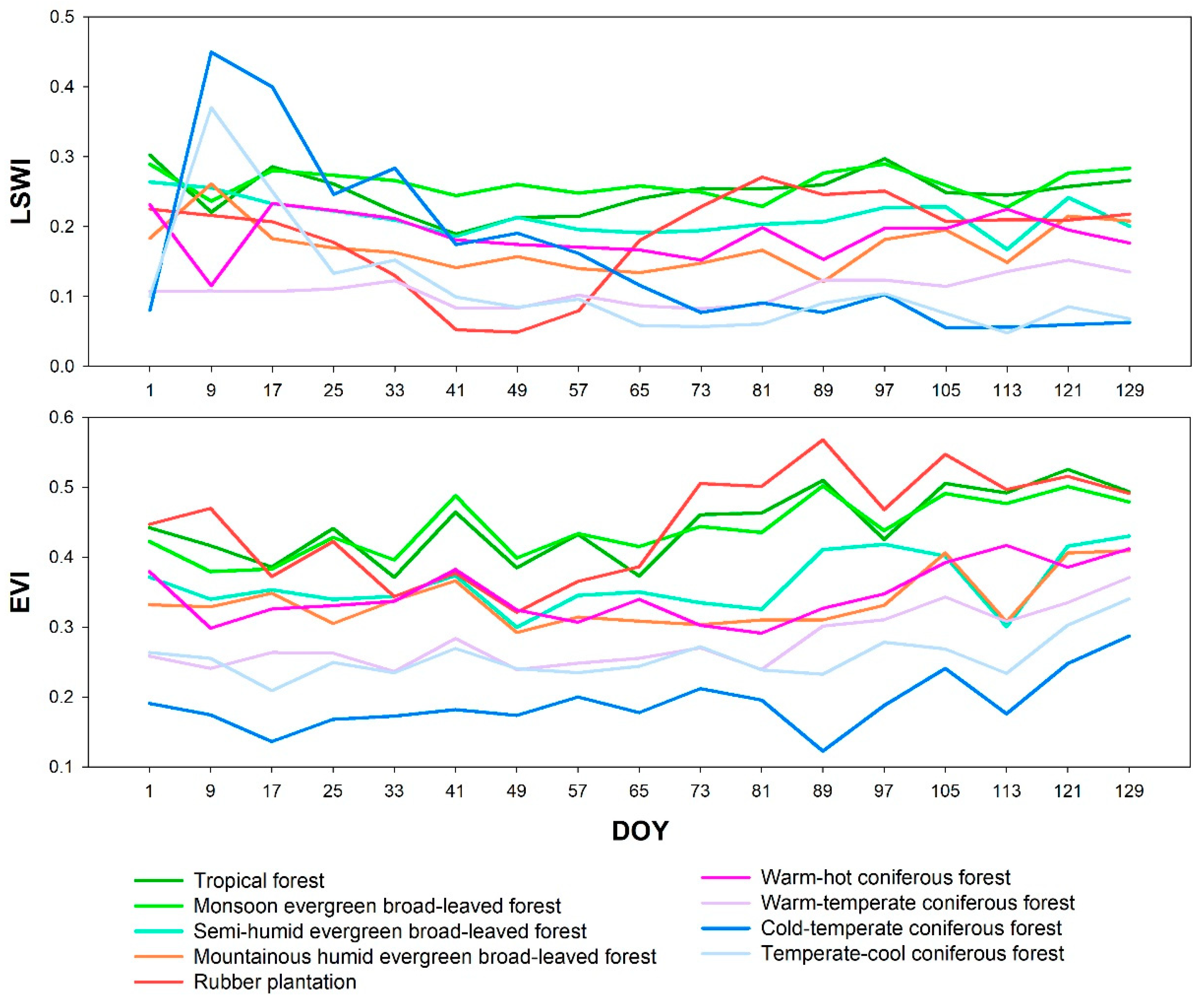 - Zeng, L.; Wardlow, B.D.; Xiang, D.; Hu, S.; Li, D. A review of vegetation phenological metrics extraction using time-series, multispectral satellite data. Remote Sens. Environ. 2020, 237, 111511. [Google Scholar] [CrossRef]