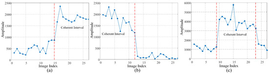 For PCSs, two critical data characteristics are introduced: coherent intervals and step change positions [9,10,13]. Step change positions refer to specific points in the time series where noticeable changes in scattering characteristics occur. Additionally, coherent intervals are continuous time segments where the PCS exhibits high coherence and stable scattering properties. Conversely, the remaining time baselines display incoherent characteristics.