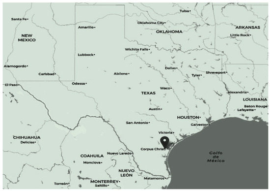 Site location at the Texas A&M AgriLife Research and extension center, near Corpus Christi in Nueces County, Texas (27.780642, −97.562110).