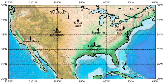 Ground-based measurements were obtained at seven stations located in the USA mainland belonging to the Surface Radiation (SURFRAD) network [53] (Figure 1 and Table 1) and are the same as those used in [31,50].