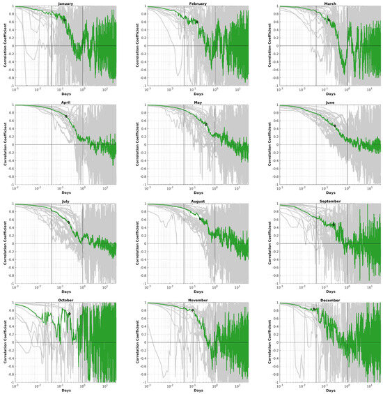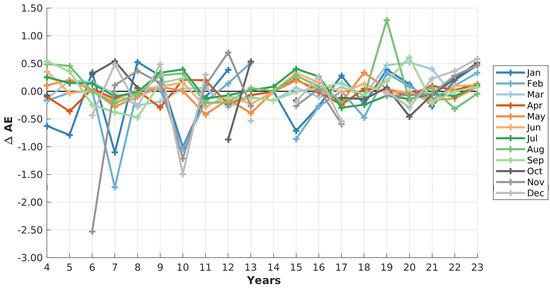 We also tried to investigate the trend over one decade (2004–2013 and 2014–2023, respectively), but the large variability between two consecutive years of the same month does not allow a trend analysis. Hence, we stick to a twenty year long trend analysis.