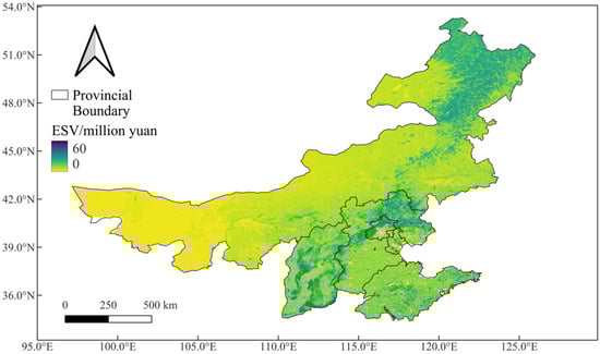 Spatial distribution of mean ecosystem service values in North China, 1991–2021.