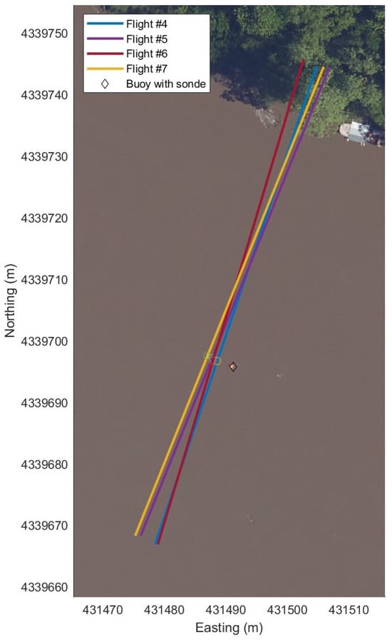 - Filippi, M.; Hanlon, R.; Rypina, I.I.; Hodges, B.A.; Peacock, T.; Schmale, D.G. Tracking a Surrogate Hazardous Agent (Rhodamine Dye) in a Coastal Ocean Environment Using In Situ Measurements and Concentration Estimates Derived from Drone Images. Remote Sens. 2021, 13, 4415. [Google Scholar] [CrossRef]