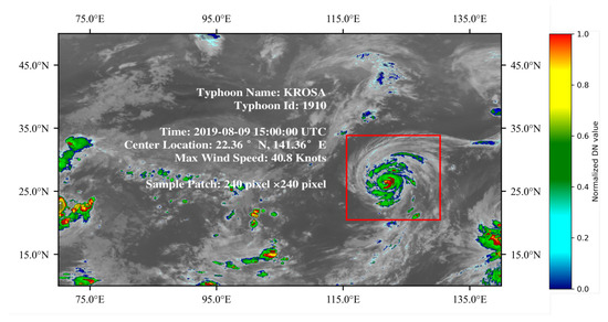 Extraction of a TC from FY-4A data utilizing a window of 240 × 240 pixels. The window is centered around the location of the TC obtained from the best-track data.