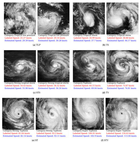 Finally, a total of 5442 satellite images of TCs are selected to train the proposed model, and 939 images of TCs were selected to verify the performance of the models. We use knots as the unit for wind speed to facilitate easier comparison with other research, but we also provide m/s versions in all of the experimental results tables.
