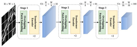 - Wang, W.; Xie, E.; Li, X.; Fan, D.; Song, K.; Liang, D.; Lu, T.; Luo, P.; Shao, L. Pyramid Vision Transformer: A Versatile Backbone for Dense Prediction Without Convolutions. In Proceedings of the IEEE/CVF International Conference on Computer Vision (ICCV), Montreal, QC, Canada, 11–17 October 2021; pp. 568–578. [Google Scholar]