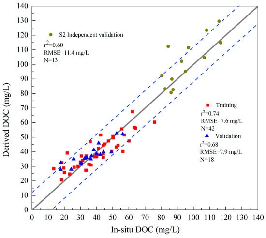 - Chen, J.; Zhu, W.; Tian, Y.Q.; Yu, Q. Monitoring dissolved organic carbon by combining Landsat-8 and Sentinel-2 satellites: Case study in Saginaw River estuary, Lake Huron. Sci. Total Environ. 2020, 718, 137374. [Google Scholar] [CrossRef] [PubMed]