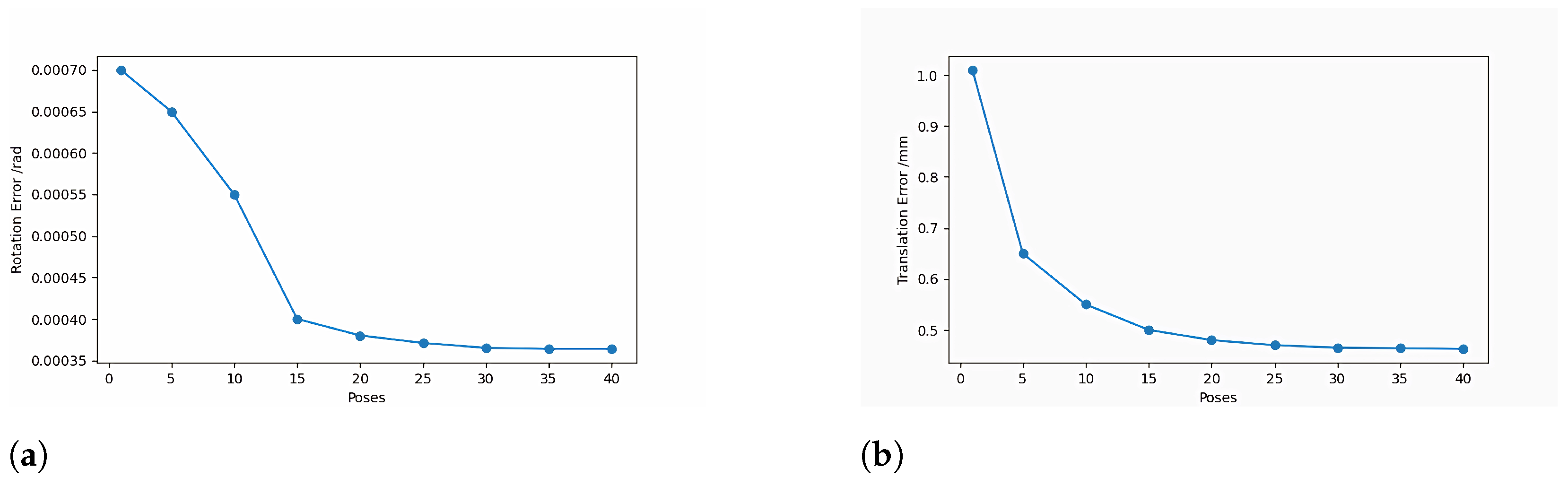 3.2.4. Influence of The Trihedron Calibration Object Poses Number on The Algorithm’s Accuracy