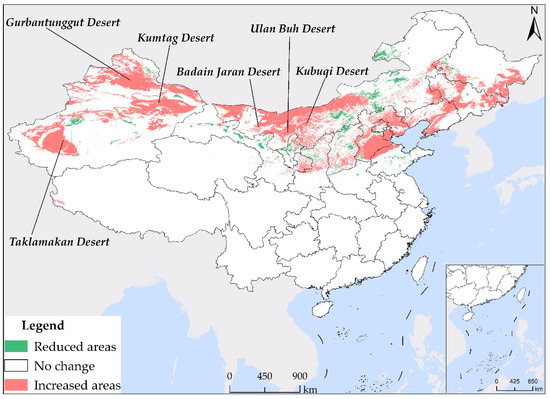 As a result of utilizing different sets of environmental variables in the construction of the models for current 1 and current 2, noticeable disparities exist in the simulation outcomes. As demonstrated in Figure 6, a significant distinction in the suitable habitat of S. rostratum under the current climate scenarios (current 1 and current 2) is apparent, with an area difference of 1.9809 million km2. Current 2 incorporates environmental variables mainly related to climate, topography, and spatial factors. In comparison to current 1, it provides more relaxed constraints, resulting in broader coverage of suitable habitat (depicted as “increased areas” in Figure 6), with a total area of 1.7507 million km2. It is worth noting that the majority of these expanded areas are distributed within desert regions, including the Taklamakan Desert in southern Xinjiang, the Gurbantünggüt Desert in northern Xinjiang, the Kumtag Desert in eastern Xinjiang, the Badain Jaran Desert, the Ulan Buh Desert, and the Kubuqi Desert in northern Inner Mongolia. Although these regions might possess potential conditions conducive to the growth of S. rostratum in terms of climate and topography, suitability for S. rostratum also depends on soil and moisture conditions. Consequently, not all these areas are necessarily suitable for this species. Conversely, regions identified as suitable for habitat by current 1 but deemed unsuitable by current 2 (referred to as “reduced areas” in Figure 6) are relatively limited in number, primarily located in Gansu and Inner Mongolia, covering smaller areas in other provinces. it is notable that Xilinhot City and Hulun Buir City in Inner Mongolia, Gansu Province, and Shandong Province are not included in the suitable habitat prediction range of current 2. These areas are highly likely to have already experienced S. rostratum invasion or present a significant risk of invasion. Particular attention should be directed toward Shandong Province, which boasts abundant port resources and has records of S. rostratum presence in the port city of Weihai. Furthermore, the prediction results of our current 1 model also indicate extensive potential suitable habitat in Shandong Province, emphasizing the elevated risk in this region. Hence, we strongly recommend that relevant authorities proactively conduct on-site investigations and enhance quarantine measures against alien invasive species in ports to eradicate S. rostratum before it spreads extensively, thus averting more extensive harm and economic losses.