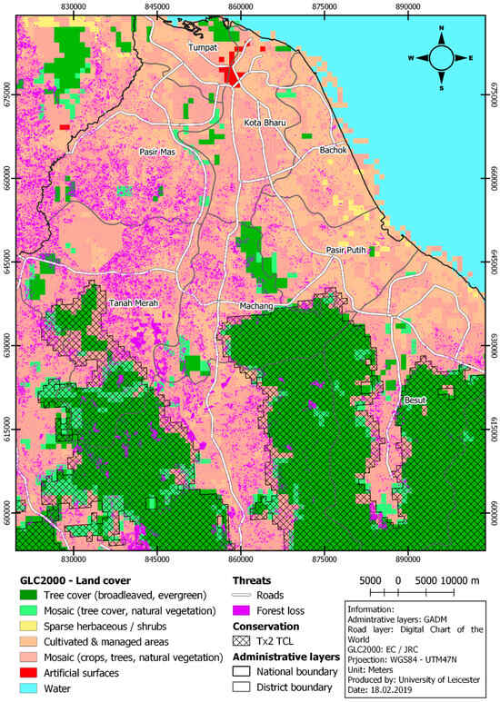 Most forest cover loss was observed in Pasir Mas, Tanah Merah, and Machang districts (Figure 4).