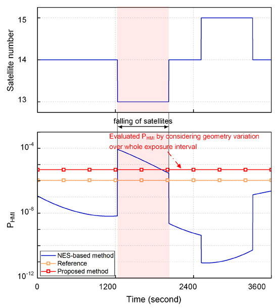 Provided the statistical distribution of HMI and the satellite geometry from all epochs across the exposure interval, the integrity risk can be obtained based on the geometry-sensitive risk-evaluation model. Nonetheless, it is usually difficult to forecast the satellite geometry variation in the exposure interval for real-time aviation navigation applications. Therefore, the geometry constant assumption within the exposure interval is adopted to simplify the complexity of integrity risk evaluation. However, the satellite geometry variation due to the rising and falling of satellites undermines the widely-used geometry constant assumption. This assumption may lead to an integrity risk-evaluation error. Next, we will introduce a general integrity risk-evaluation method to investigate the influence of satellite geometry variations throughout the exposure interval on the integrity performance of the NES-based ARAIM.