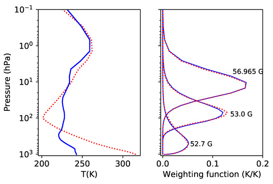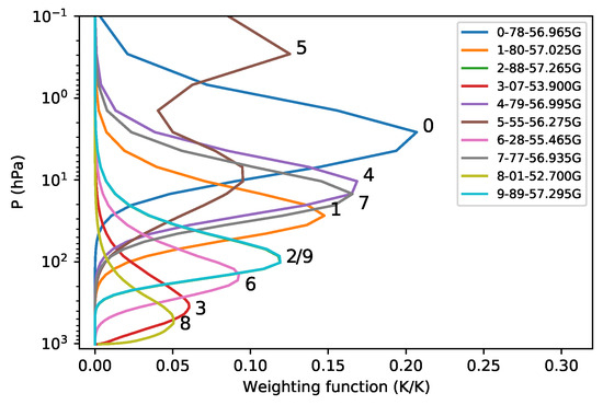 In China, space-based remote sounding using passive microwave sensors for meteorology starts from FengYun-3 (FY-3) meteorological satellite, which is operated in polar orbit [3]. Among the sensors are the MicroWave Temperature Sounder (MWTS) and the MicroWave Humidity Sounder (MWHS). Their channels are similar to those of ATMS. However, the number of channels for these space-borne microwave sensors is quite limited, less than 20 channels for MWTS onboard FY-3E satellite. As mentioned by previous studies [4], the limited number of channels is insufficient to detect the Earth’s atmosphere, especially the height of the tropopause. It is especially true for cases in which cloud or other hydrometeor is present in the atmosphere. In contrast, remote sensing using near-infrared or infrared band currently contains several thousand channels such as the Infrared Atmospheric Sounding Interferometer (IASI) on the meteorological operational satellite program (MetOp), the Cross-track Infrared Sounder (CrIS) on the Suomi National Polar-Orbiting Partership (SNPP) satellite or the Hyper-spectral Infrared Atmospheric Sounder (HIRAS) on FY-3. Although not all of the hyper-spectral infrared channels are used, they significantly improve the retrieval accuracy. Generally, a satellite sensor with high spectral resolution has the capabilities of carrying enough information content to allow the full characterization of the parameters being retrieved. This is suitable not only for the infrared sensor, but also for the microwave sensor.
