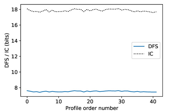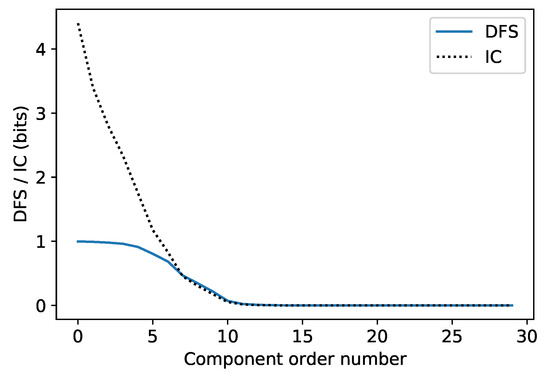The first 30 components of the information content and DFS for an individual profile in the first data set.
