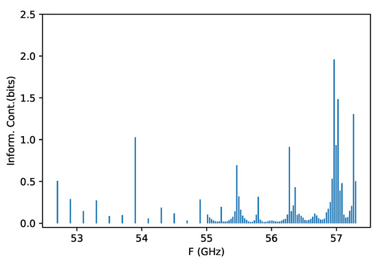 The average information content for each channel over all the profiles in the first data set are shown in Figure 11. The informative channel regions of the microwave hyper-spectral band have good consistency with other existing sensors’ channels. It can be seen that there is a high information enrichment region near 57 Ghz where the largest amount of information content is also located. As is well known, ATMS and AMSU-A have many channels around 57 GHz. Their observations have already been used in the numerical weather prediction (NWP) model. There also is a high informative channel locating at 53.9 GHz, which is very close to ATMS channel 6. The mean of DFS for each channel over all the profiles shows similar result, too. It is expected that the spectrum of information content can provide some reference for the use of microwave hyper-spectral measurement in the NWP model.