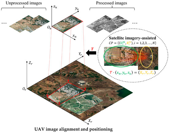 2.1. Satellite Imagery-Assisted Real-Time UAV Image Alignment and Positioning