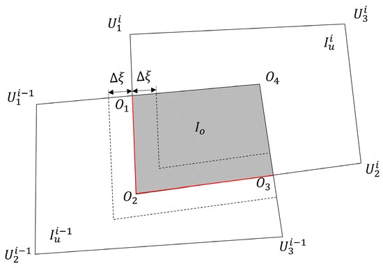 - Solve for the degree of overlap between adjacent images, which is calculated as follows:where is the area of the ith image to be stitched. Since the stitching method uses incremental stitching, in practice the previous frame of the stitching is the group of images, so for simplicity, the overlap solution is based directly on the area of the image to be stitched;