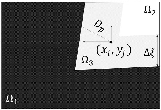 Figure 4. Schematic diagram of distance transformation calculation. The region containing no valid image information is defined as . The region containing the valid image information is defined as , where the FROI region is defined as . Regions , and are interrelated: , , . indicates the distance of the pixel from its nearest background pixel.