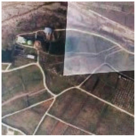 In the method of this paper, the satellite image data region is the approximate region, which only needs to include the UAV flight area to support the feature matching between UAV images and the satellite image. Therefore, the satellite image data selected in the experiments of this paper are based on the assumption of a known approximate mission region rather than being based on the precise positioning information from GNSS. Its partial zooms are shown in Figure 10. The size of the image is 896 × 1024 pixels. There are significant differences between the satellite reference imagery and the UAV imagery, both in terms of feature type and exposure. It well represents the fast-stitch scenario of UAV imagery in most emergency response situations.