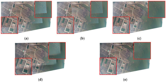 However, due to imaging characteristics, hue and exposure differences between UAV image frames are unavoidable, and pixel gray values are rearranged during the image alignment process. Therefore, after the satellite imagery-assisted rapid alignment, obvious gaps will be formed at the stitching boundary of the UAV images, which need to be further smoothed using the methods proposed in Section 2.2 and Section 2.3.
