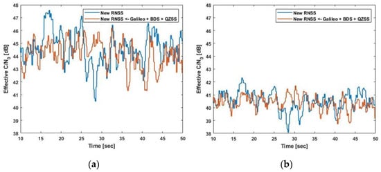 The effective carrier-to-noise ratio (): (a) PRN 4; (b) PRN 6.