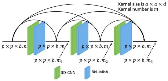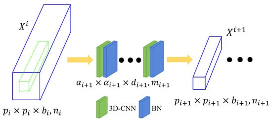 15] combined a 2D-CNN and 3D-CNN to acquire spectral–spatial characteristics jointly represented from spectral bands using 3D-CNN, and then further learned spatial feature representations using 2D-CNN. Guo et al. [
