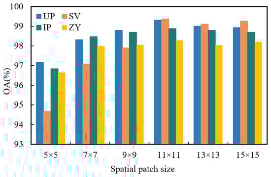 Figure 9. According to the classification accuracies under different spatial patch sizes in three datasets, the patch size of the proposed CNSST set as