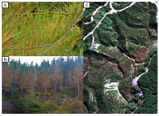 39]. Satellite imagery has also been successfully used to detect damage from jack pine budworm [