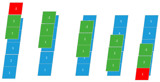 The strip convolution operation involves shifting each row of elements by one bit compared to the previous row in order to achieve channel interaction while also reducing the number of parameters. This process simplifies the convolution calculation, as illustrated in Figure 2. Different colors represent the upper and lower rows of elements.