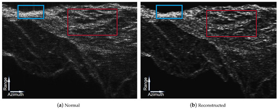 In Figure 7a,b, the average noise level is −93.81 dB by traditional method and −96.24 dB after reconstruction, resulting in a reduction of the noise level of 2.43 dB. However, the image exhibits peak power of 1.0018 and 0.6937 prior to and following reconstruction correspondingly, which means that there is some loss of energy. We looked into the causes of this loss in the later chapters.