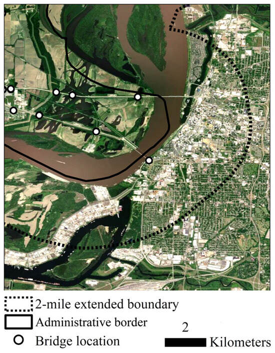 A bridge over the Mississippi River in Arkansas that is located between the administrative border and the 2-mile-extended boundary and hence was retained.