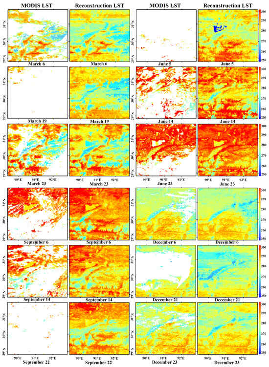 - The all-weather LST reconstructed in this study can effectively compensate for the missing pixels in MODIS LST and exhibits high spatiotemporal continuity. Many spatial distribution details are accurately restored. This provides a new method for the reconstruction of all-weather LST.