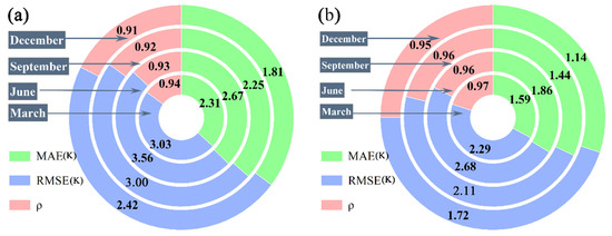 - The reconstructed LST in this study demonstrates high accuracy, with an average RMSE of 2.20 K, average MAE of 1.51 K, and ρ greater than 0.9. This provides fundamental research data for studies related to the thermal environment.