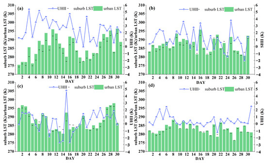 - Sheng, L.; Tang, X.L.; You, H.Y.; Gu, Q.; Hu, H. Comparison of the urban heat island intensity quantified by using air temperature and Landsat land surface temperature in Hangzhou, China. Ecol. Indic. 2017, 72, 738–746. [Google Scholar] [CrossRef]