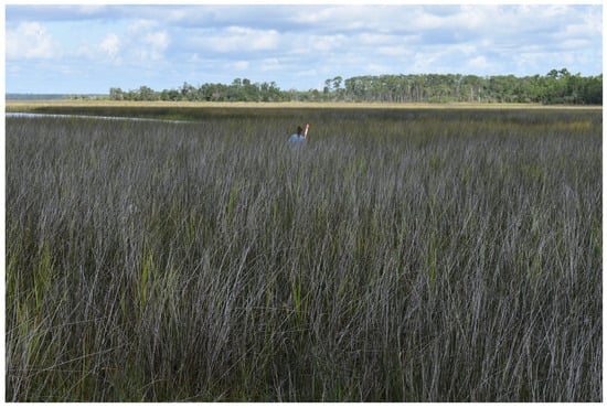 - Eleuterius, L.N.; Caldwell, J.D. Soil Characteristics of Spartina Alterniflora, Spartina Patens, Juncus Roemerianus, Scirpus Olneyi, and Distichlis Spicata Populations at One Locality in Mississippi. Gulf Res. Rep. 1985, 8, 27–33. [Google Scholar] [CrossRef][Green Version]