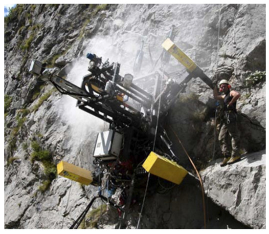 - Molfino, R.M.; Razzoli, R.P.; Zoppi, M. Autonomous drilling robot for landslide monitoring and consolidation. Autom. Constr. 2008, 17, 111–121. [Google Scholar] [CrossRef]