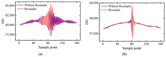 Interferometric intensity sequence resampling of the (a) broad-band interference channel and (b) high-resolution interference channel.