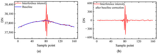 (a) Baseline of interferometric intensity sequence; (b) interferometric intensity sequence after baseline correction.