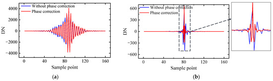 Phase correction of interferometric intensity sequence in the (a) broad-band interference channel; and (b) high-resolution interference channel.