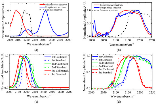 ν′ is the wave number after shift, ν is the theoretical wave number, and kgain, and boffset are constants. Therefore, the multi-point fitting calibration method is used to perform the first-order linear least squares fitting between the measured spectral wavenumber of each point and its theoretical value for spectral calibration.