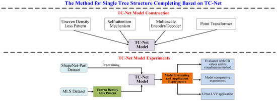 This section focuses on our overall research approach, the construction of the TC-Net network, and the proposal of a new missing method and a local similarity visualization method for the vegetation point clouds.