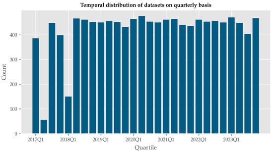 In terms of temporal coverage, the year 2017 was the least represented (Figure 5), mainly due to a low pass frequency and high cloud cover, as Sentinel-2B was not yet in orbit. In terms of processing time, based on experimental results, it is estimated that parallel processing using Dask saved 69.44% of the time required.
