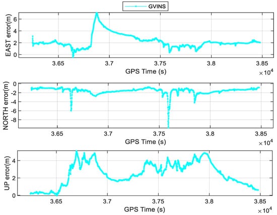 The position errors of GVINS in E, N, and U directions.
