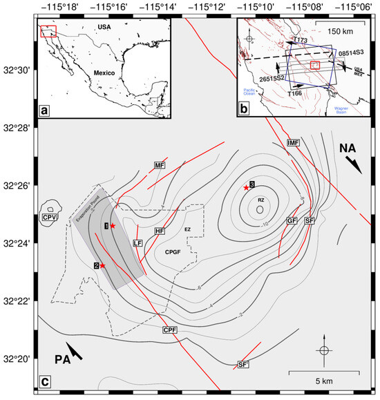 - Trugman, D.T.; Borsa, A.A.; Sandwell, D.T. Did stresses from the Cerro Prieto Geothermal Field influence the El Mayor-Cucapah rupture sequence? Geophys. Res. Lett. 2014, 41, 8767–8774. [Google Scholar] [CrossRef]