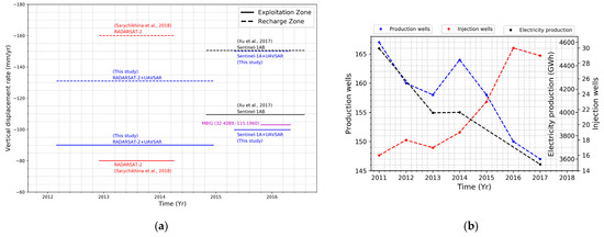 - Vasco, D.W.; Rutqvist, J.; Jeanne, P.; Samsonov, S.V.; Hartline, C. Using geodetic data in geothermal areas. Lead. Edge 2020, 39, 883–892. [Google Scholar] [CrossRef]