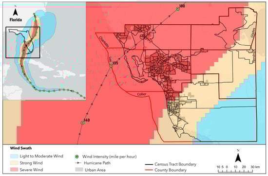 Extreme weather patterns driven by global environmental changes pose significant threats to human communities worldwide []. The U.S. has faced substantial consequences from increased flooding and the increasing frequency of hurricane events, resulting in losses of over USD 997.3 billion and over 6500 lives from 1980 to 2020 []. Meanwhile, the growth of coastal populations and expansion of urban development has increased the exposure of coastal communities and infrastructure to hurricanes throughout the U.S. []. As one of the most vulnerable coastal regions in the U.S., Florida has been affected by some of the most destructive hurricanes in U.S. history and endured the highest amount of hurricane-induced economic loss in the nation []. The hurricane threat in Florida was highlighted by Hurricane Ian in 2022. Characterized by severe weather conditions, Hurricane Ian exemplified the vulnerability of areas with urban sprawl and pointed out the significant risks associated with coastal areas in Florida []. Hurricane Ian resulted in economic losses exceeding USD 113 billion []. The losses included a significant number of homes that were either destroyed or damaged, impacting communities with various socio-economic conditions. The variation in building damage among communities provides an opportunity to investigate the factors contributing to building damage.