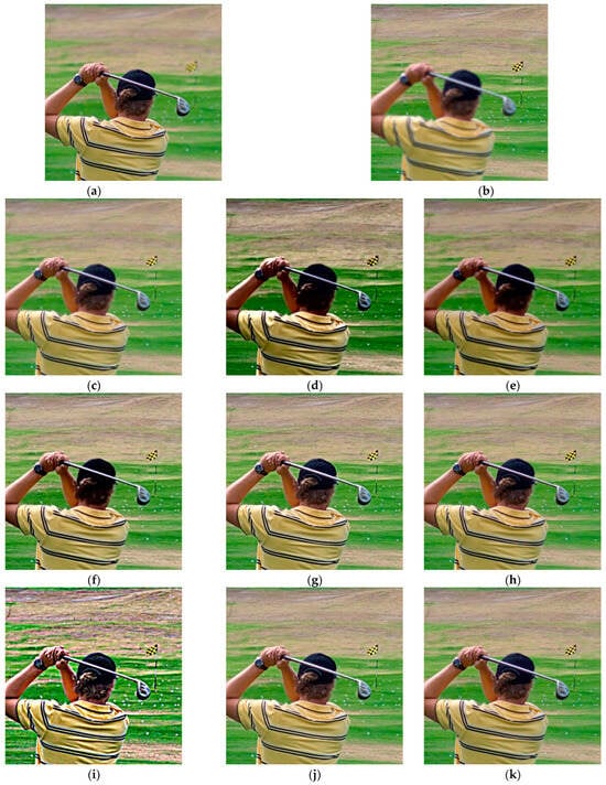 The parameters for the compared algorithms correspond to the default parameters in the respective articles. For our method, the parameters are as follows: , ; the dictionary size is 256, with K-SVD iterated 180 times. Patch size is 6 × 6, step length is 1, and error tolerance is 0.1 [1].