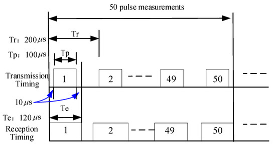 where is the fast time, , and is the chirp rate of the signal. The transmitted LFM signal boasts a bandwidth of 150 MHz and a time duration of 100 s, achieving a resolution of 1 m level after pulse compression. The sampling rate of the data acquisition system is 480 MHz. Figure 7 illustrates the transmission and reception timing.