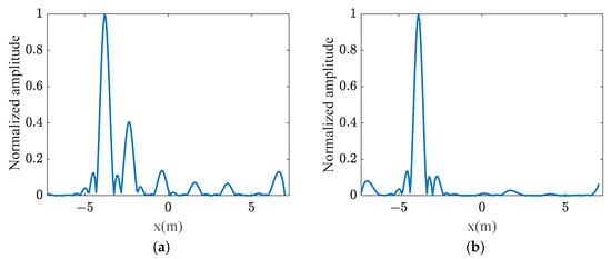 Figure 8 plots the azimuthal dimensional slices in the second row of target distances for both methods at 0 dB. It can be seen that the azimuthal slices of the proposed method possess lower sidelobes compared to those of the FM method, which further indicates that the method is able to obtain better imaging performance.