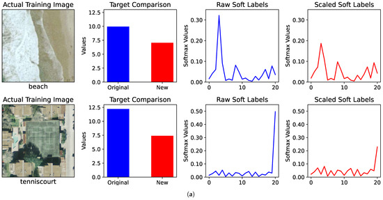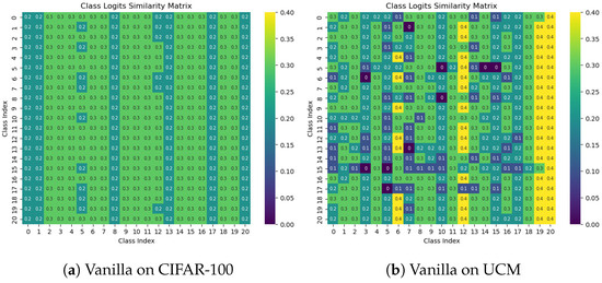 Conversely, samples with low inter-class similarity may lead to overly sharp soft target distributions, which suppress the effectiveness of logit knowledge distillation [31,32] (the reason overly sharp soft target distributions can diminish the potential benefits of knowledge distillation is explained in Appendix A). Similar to one-hot labels, these soft labels exhibit low confidence for non-target classes and lack rich category knowledge. This underscores the importance of non-target logits, which may contain valuable “dark knowledge” essential for effective model training, as illustrated by the blue dashed box in Figure 1.